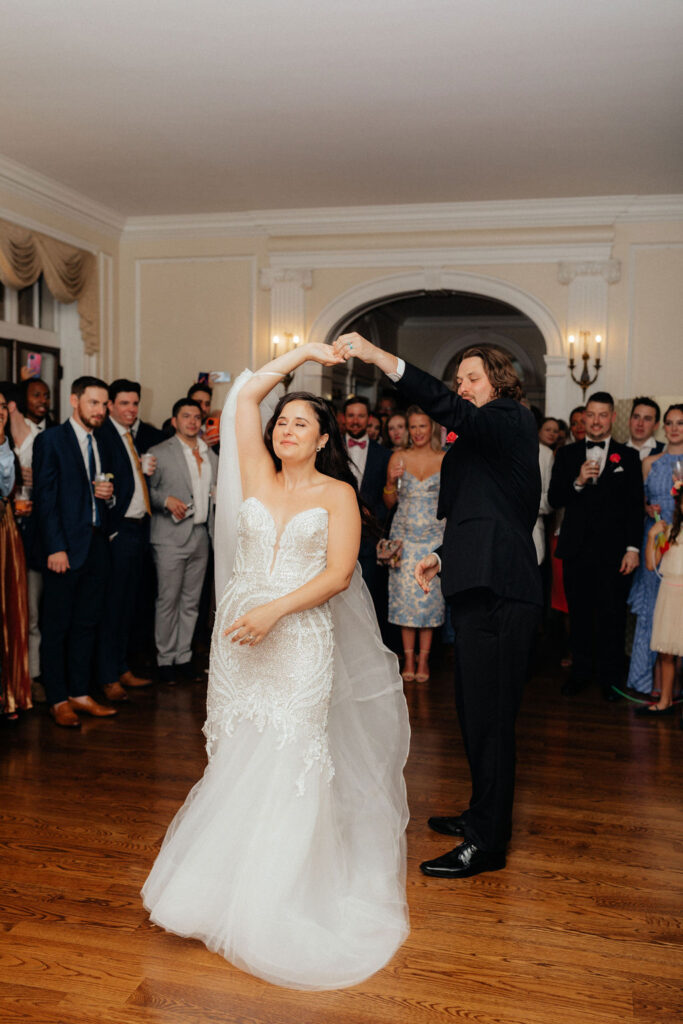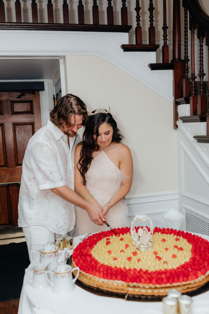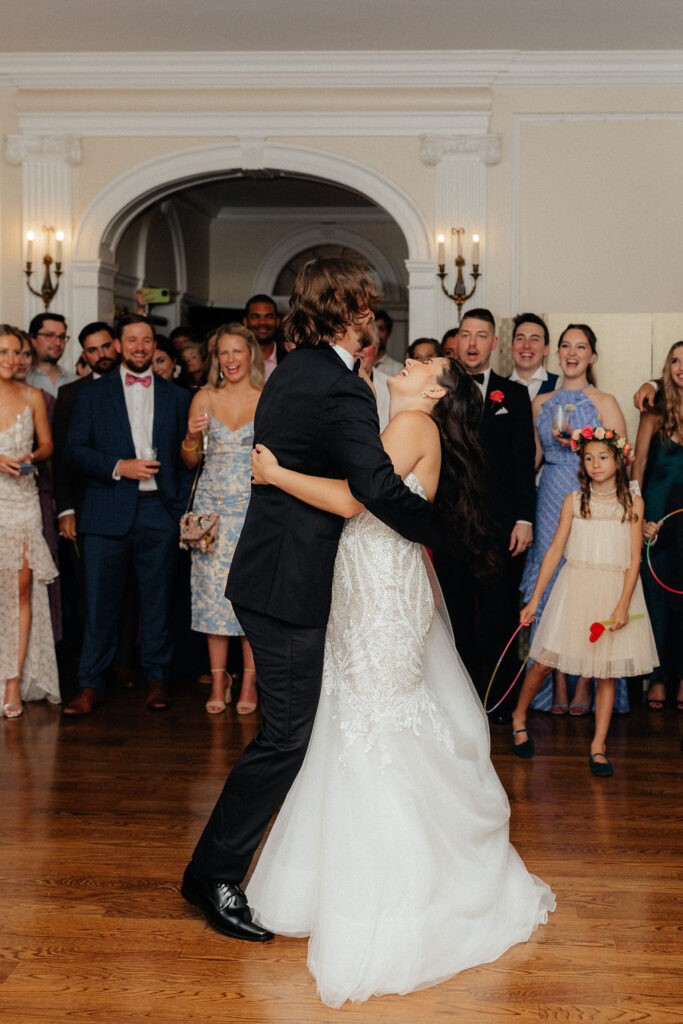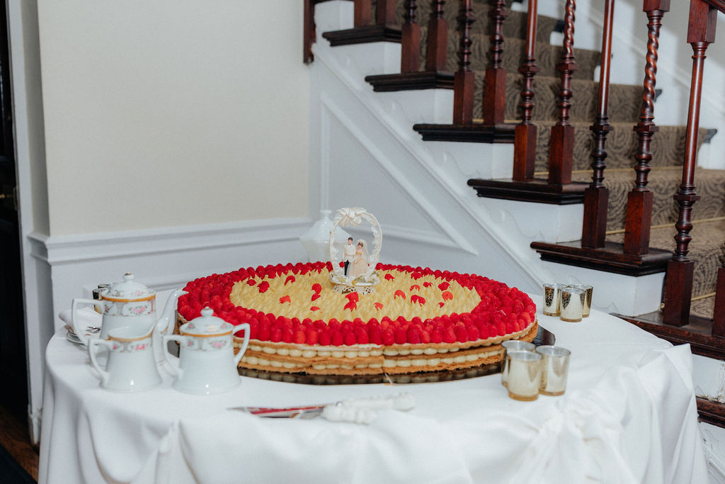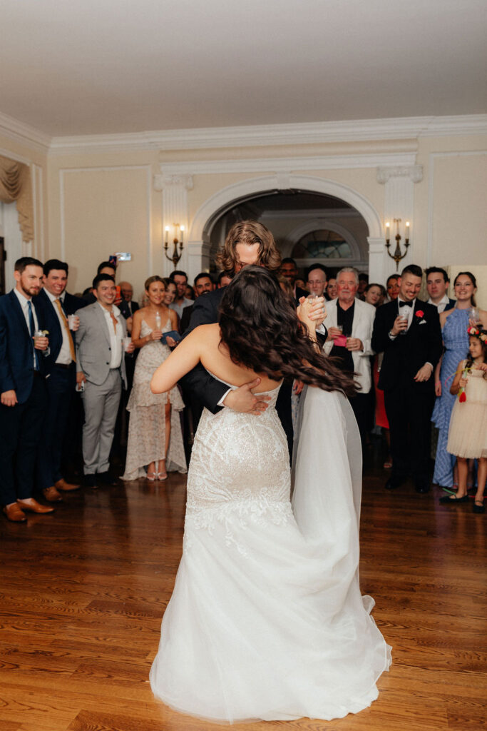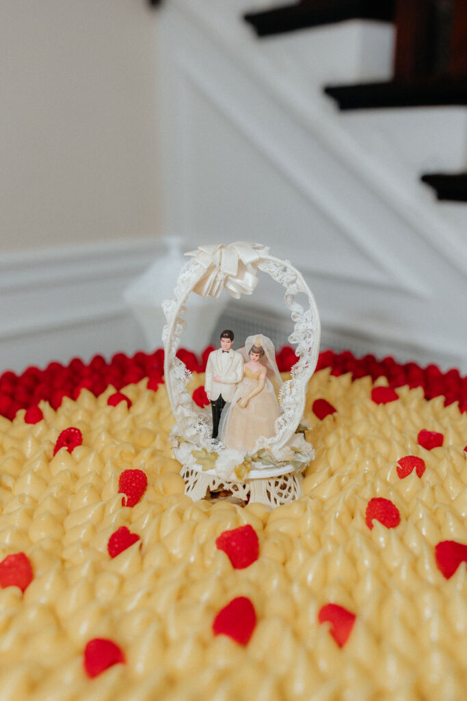 After the intimate ceremony, it was time for the reception and dancing. Eva and Sam’s first dance was so sweet and having the dance floor surrounded by their loved ones made it extra special. They had a delicious dessert to serve all their guests and the cake topper was actually from Eva’s parents’ wedding cake. Such a special nod to their family and a sweet moment carried through generations.